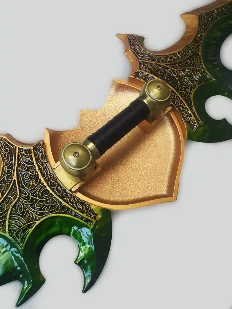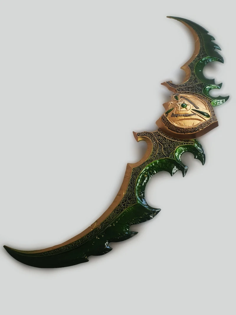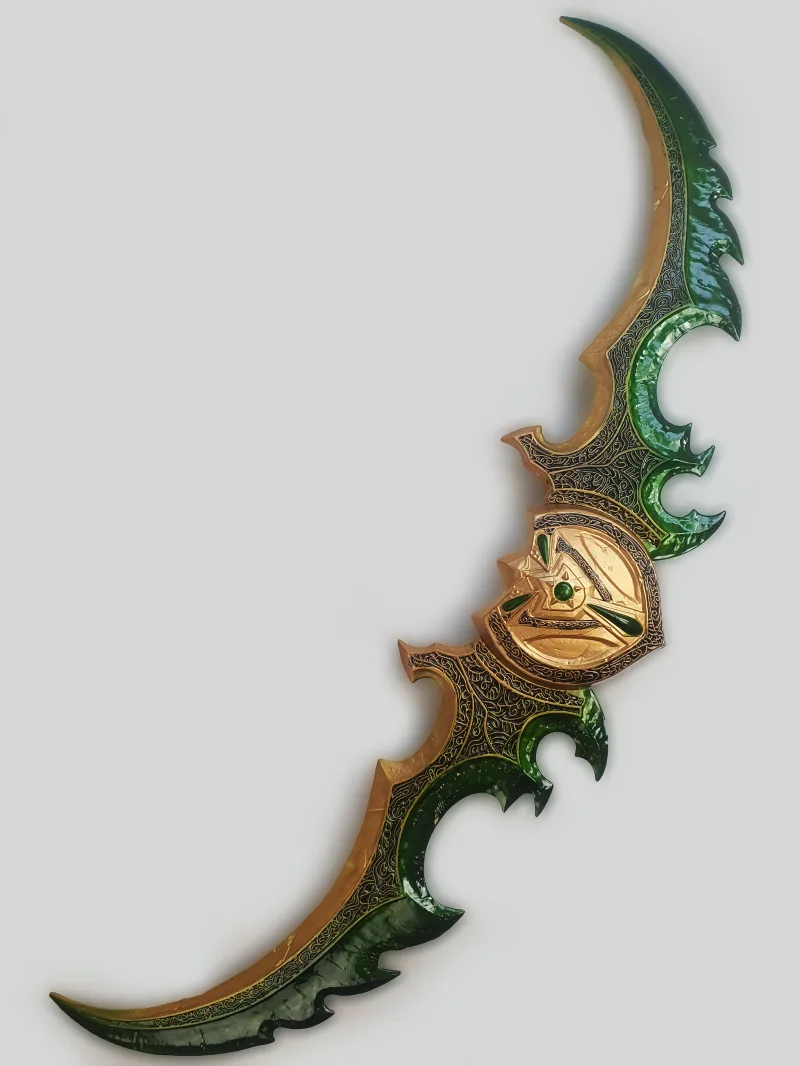Magnifique reproduction des lames jumelles d’Azzinoth repris par l’elfe de la nuit Illidan Hurlorage tiré du jeu World of Warcraft. |