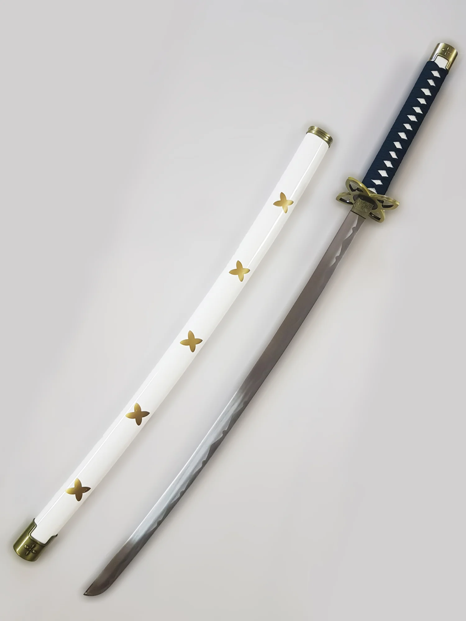 KATANA SHIGURE DU LIEUTENANT TASHIGILa lame du Katana est en acier inoxydable et la garde en forme de feuille tout en acier. Le manche en imitation peau de raie recouvert d’un nylon vert. Longueur de la lame : 65 cm |