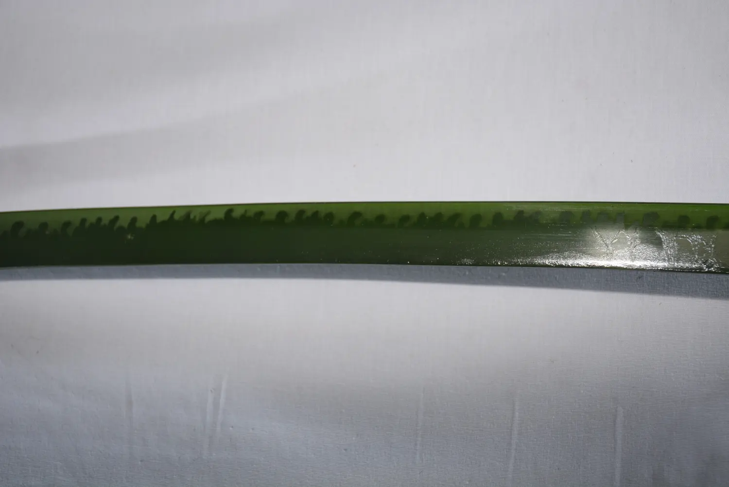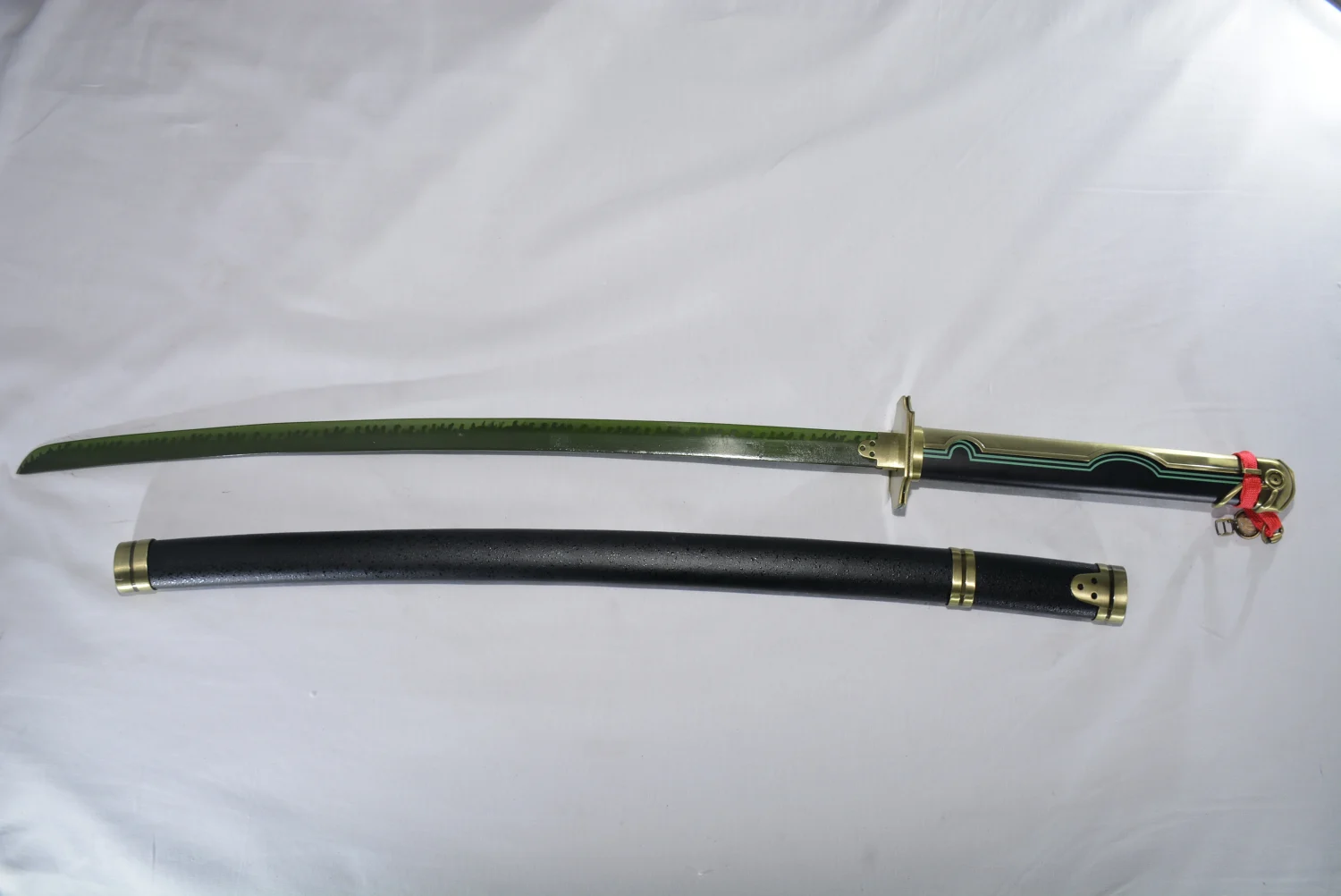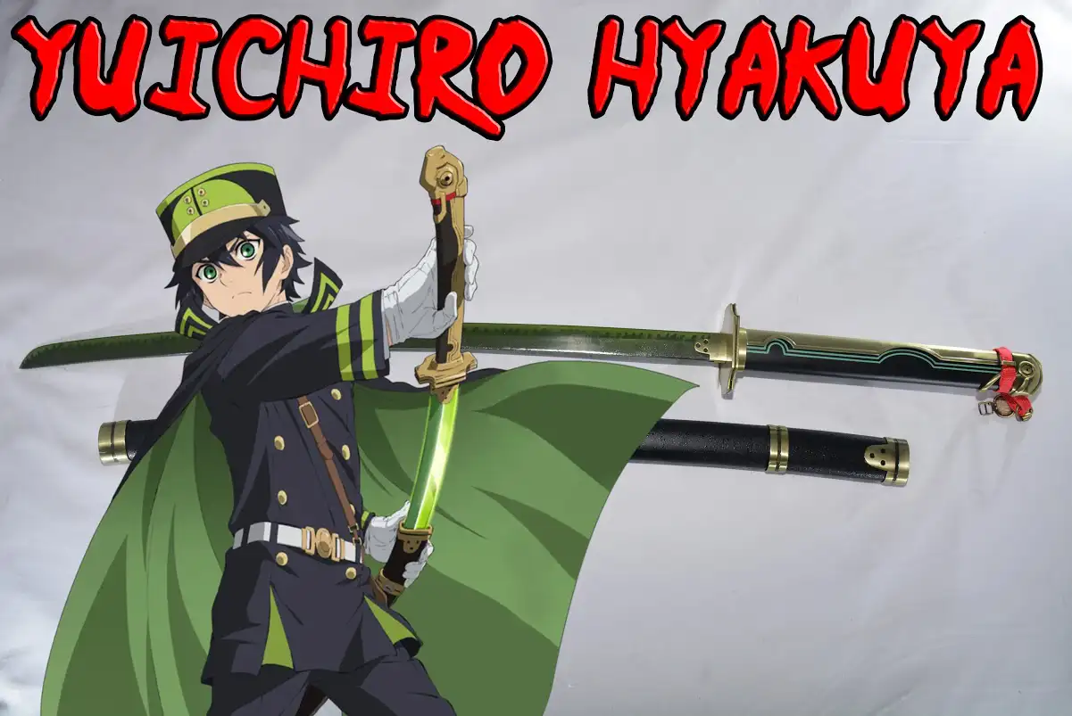 Le katana de Yûichirô Hyakuya qui est possédé par un démon dans Seraph of the End, avec sa lame verte ainsi que les motifs de flammes |